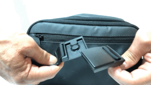 NO-TECK POUCHは、アルミフックとFidlockマグネットバックルを使用した取り外し可能なストラップを取り付けることできます。