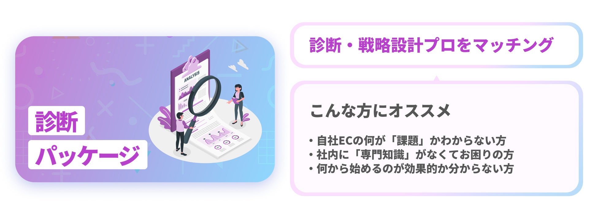 診断・戦略設計のプロが、ECの細かな分析を通し、取り組むべき「課題を特定」して戦略を作ります。