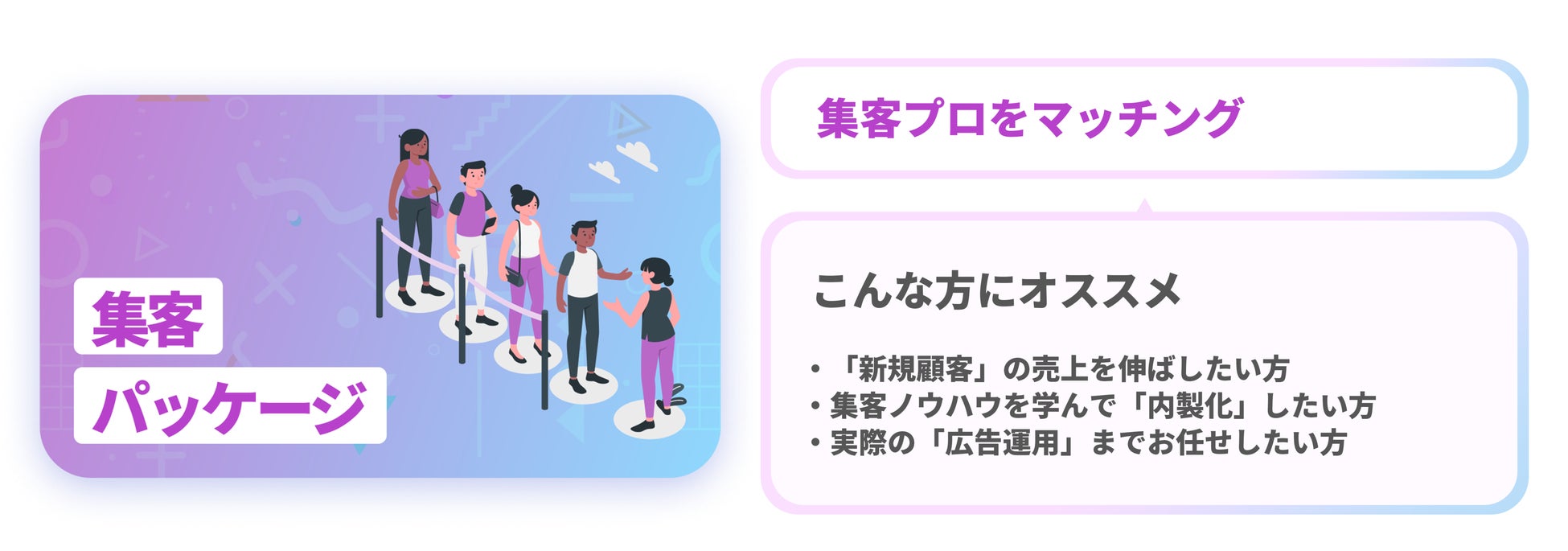 集客プロが、「新規顧客の獲得」を目指して、集客戦略から広告運用まで幅広く支援します。