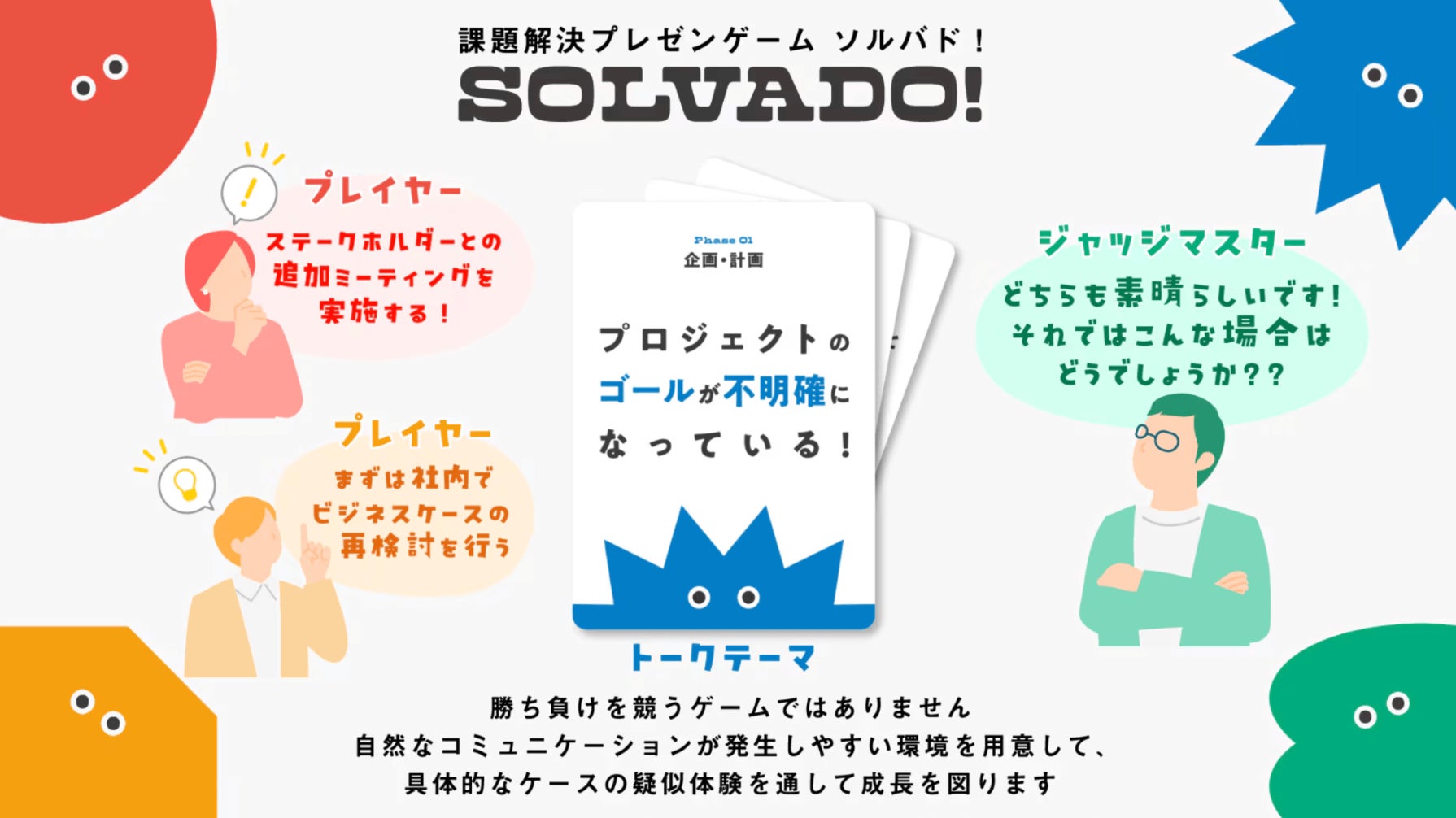 企業のDX推進支援やAI・ITシステムの開発を手がける株式会社クラスフォックスは、生成AIを活用した課題解決プレゼンゲーム「SOLVADO!(ソルバド!)」のデジタル版全5種類を、2025年7月より販売開始いたしました。2024年にパッケージ版にてIT編をリリースしましたが、このたびは5つの分野に対応したデジタル版でのリリースとなります。