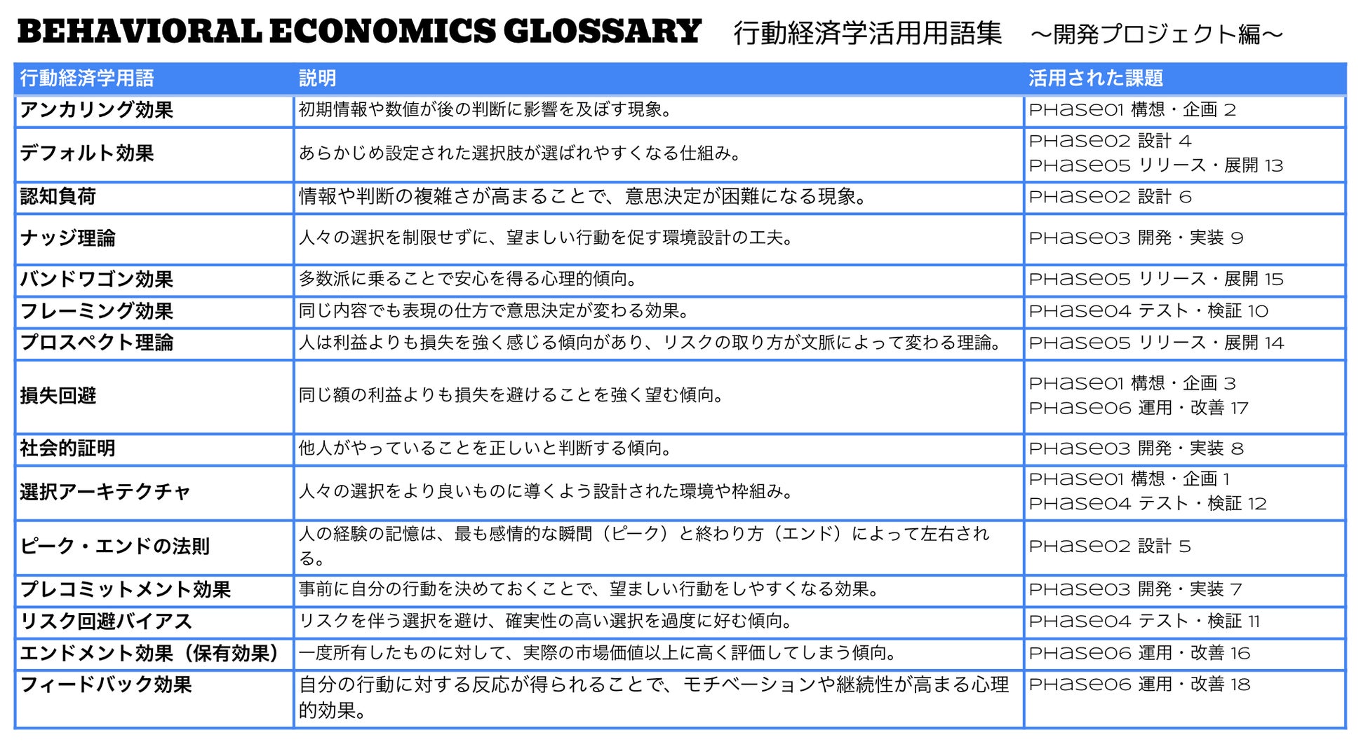 各課題には、「フレーミング効果」「選択アーキテクチャ」「アンカリング効果」など、行動経済学に基づいた解説がついており、より納得感のある改善策を考えるきっかけになります。