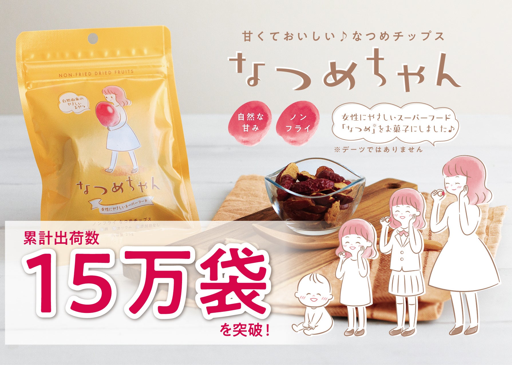 自然派おやつで女性からの圧倒的支持!ノンフライドライフルーツの『なつめちゃん』が累計出荷数15万袋を突破!!