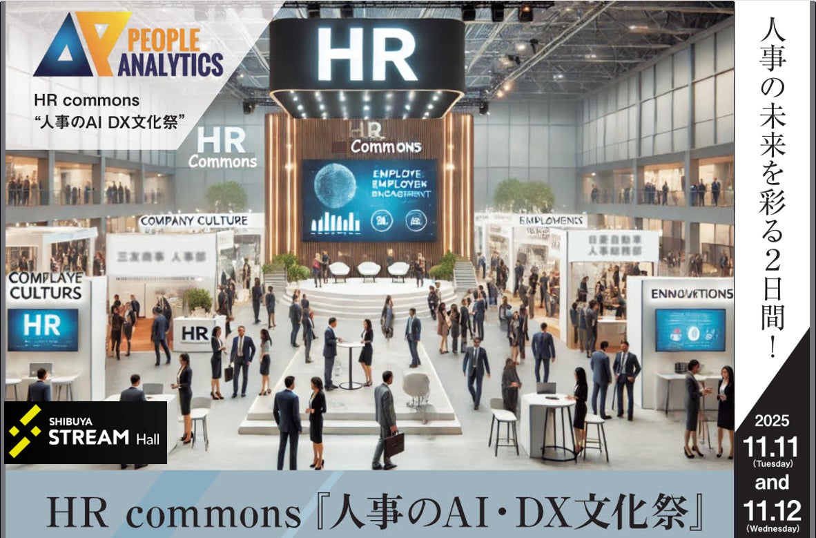 一般社団法人ピープルアナリティクス&HRテクノロジー協会(所在地:東京都渋谷区、代表理事:長瀬昭彦)は、AIとデジタル変革(DX)の最前線を人事目線で体験できる新しい形のリアルイベント「HRcommons 人事のAI DX文化祭」を、2025年11月11日(火)・12日(水)に渋谷ストリームホールで開催いたします。