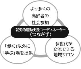 ・生きがい就労のコーディネート(高齢者、企業(仕事)、地域をつなぐ)