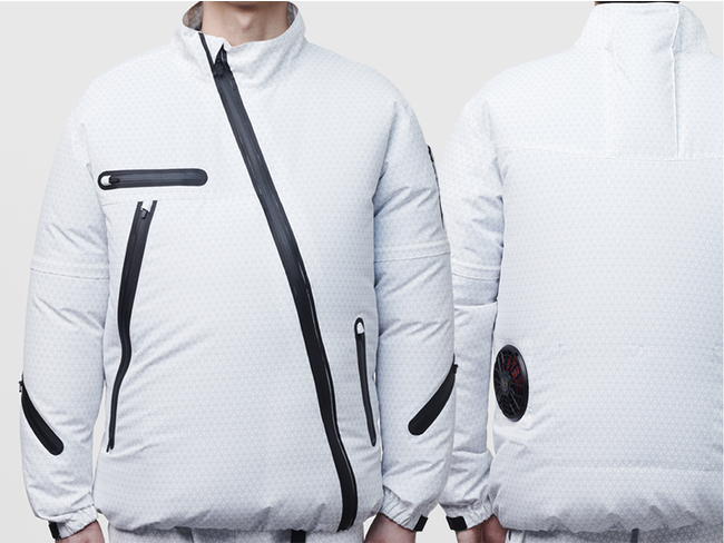 デバイス(バッテリーとファン)は広島県福山市のサンエス製リチウムイオンバッテリー(日本製)を、生地は高密度に織り込まれ薄くても風を漏らすことなく循環させることに優れ、耐久性が高くシワになりにくいクラレトレーディング製を採用。さらっとした手触りでファンを稼働中にはいつでもドライに保つことができ着心地がよく、幅広い用途で着用いただけるファン付きウェアが誕生しました。