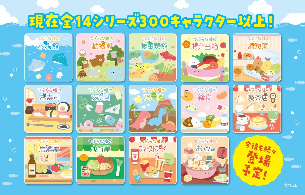 2019年2月に「つぶらな瞳の水族館」が登場して以来、動物園や爬虫類などの生き物や、お弁当箱やお寿司などの食べ物、更には文房具など現在までに14タイトルをリリース。