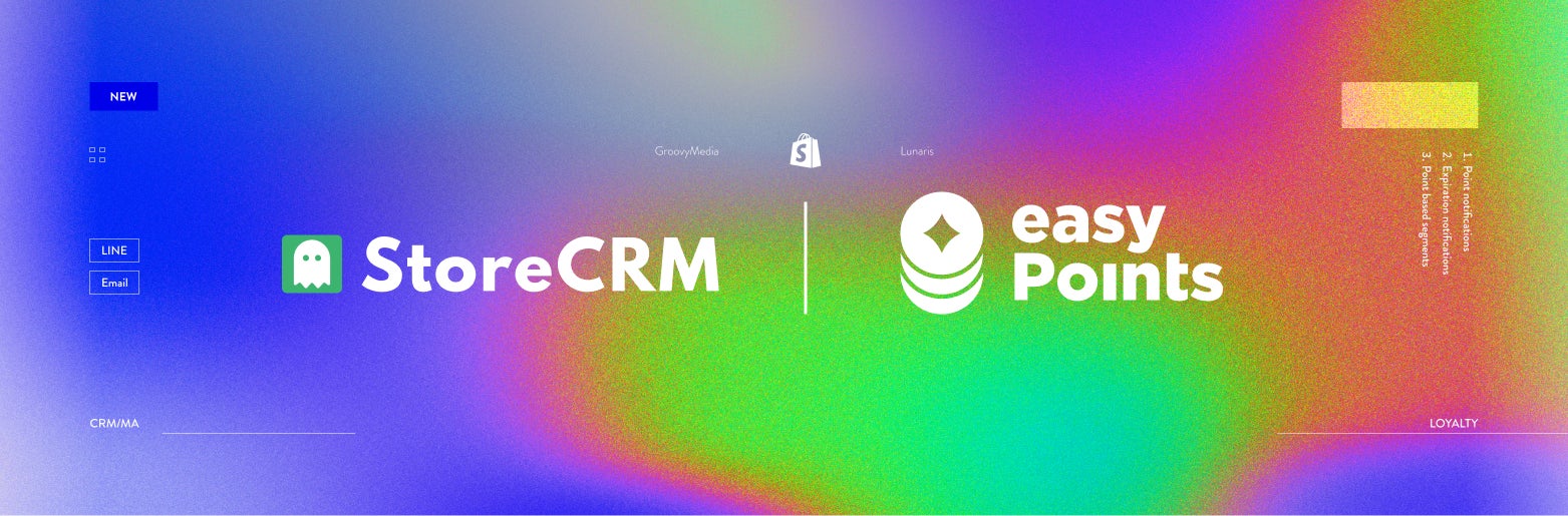 株式会社グルーヴィーメディア(本社:東京都港区、代表取締役:渡邊翔太、以下グルーヴィーメディア)は、合同会社Lunaris(本社所在地:東京都武蔵野市、CEO:Jacob Iyamu)と業務提携し、Shopifyに特化した日本発CRM/MAアプリの「StoreCRM」が、ポイントシステムアプリ「easyPoints」と連携したことをお知らせいたします。