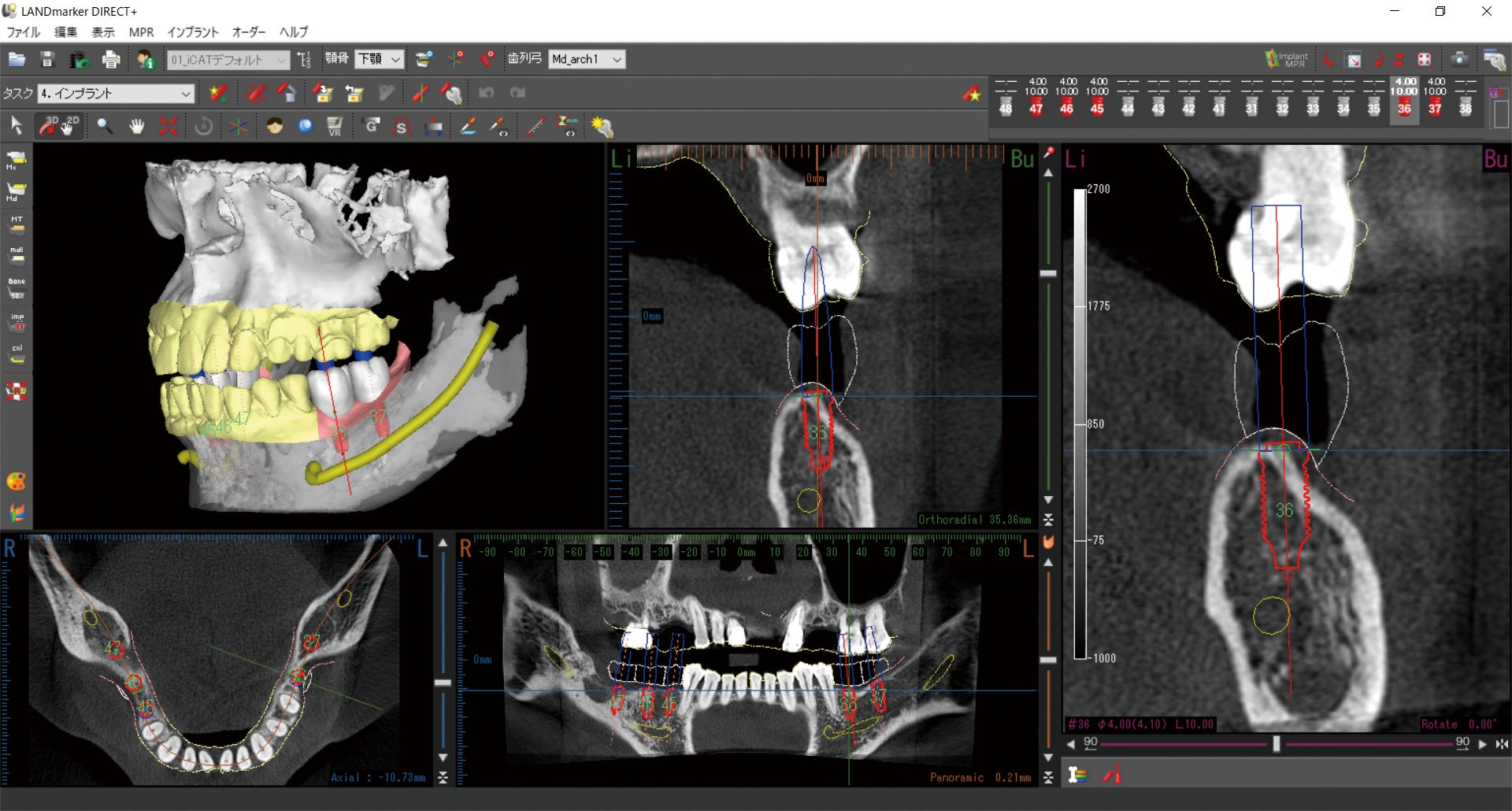 また、近年、歯科医院においては歯の形状を従来の型取りによる石膏模型ではなく専用のスキャナーで取得し、その3Dデータを顎骨のCTデータに合成してインプラントシミュレーションに活用する医院が増えていますが、iCATではまずこの合成作業をAIによって自動化できる機能を実装します。これによりシミュレーションのための事前準備が省力化されるとともに合成精度もアップし、診断精度の向上につながります。