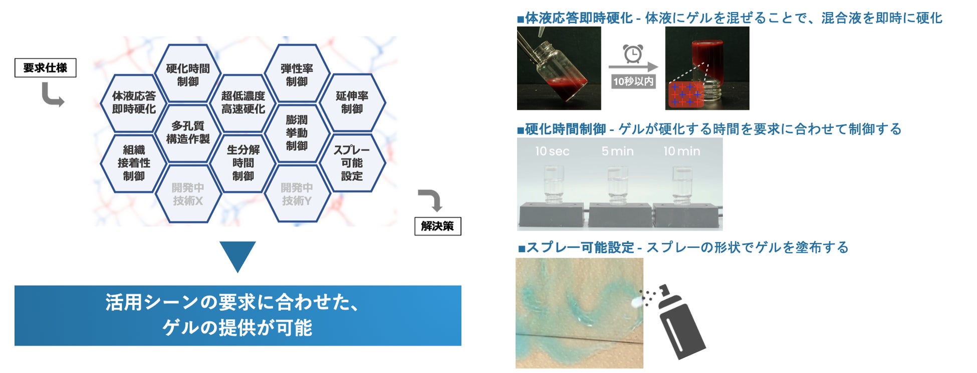 このテトラゲルの特性により臨床現場で求められるあらゆるニーズに対応ができるため、ジェリクルでは多くの臨床医と共同研究を進めております。私達はこの革新的技術を活用した医療製品をいち早く世の中に届けるために、医療に関わる多くの領域で、このテトラゲル技術を使って共同開発をする企業と今後もパートナーシップを構築していきます。