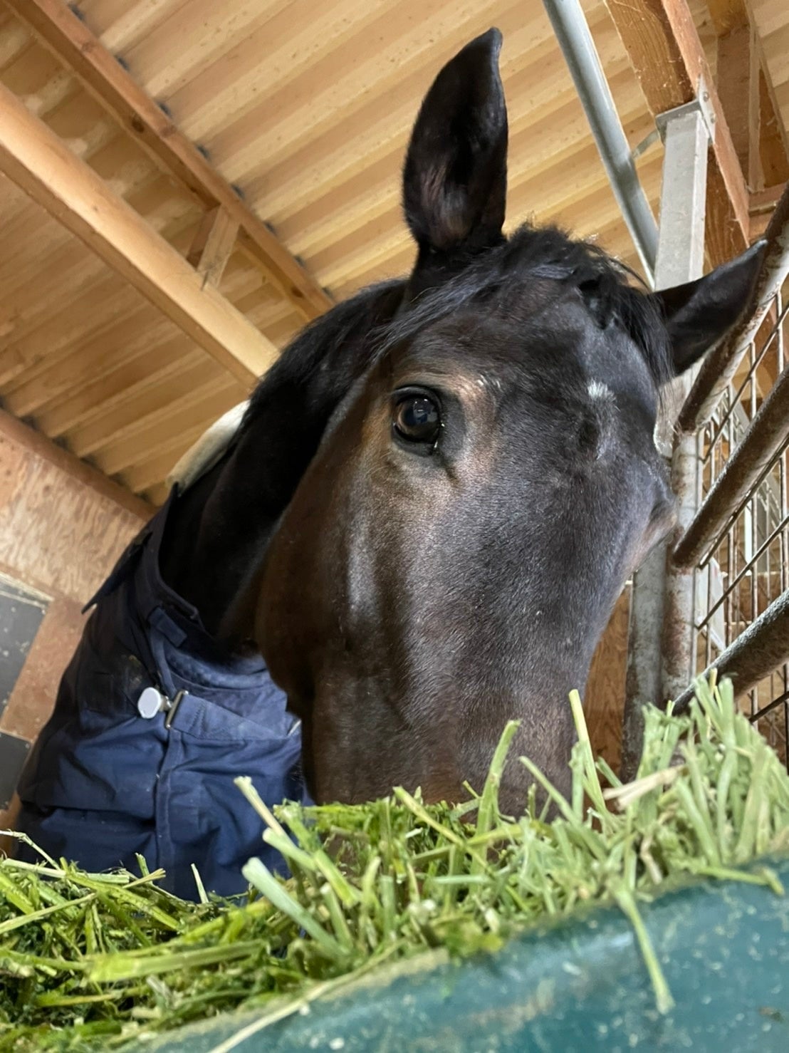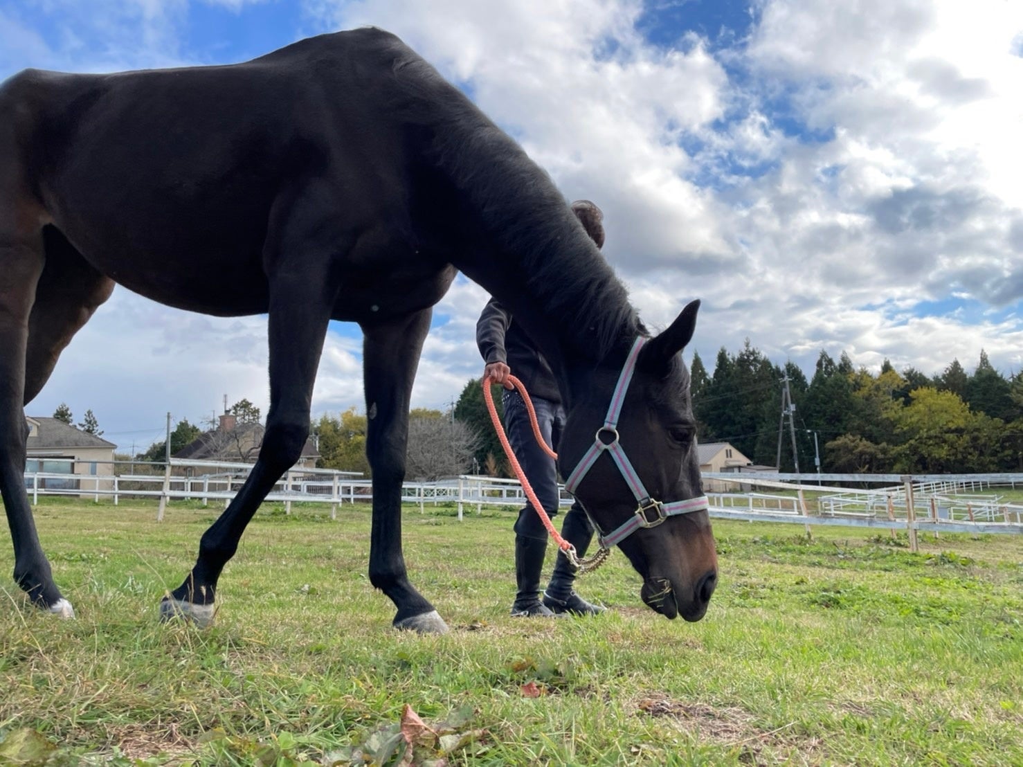 しかし、ゲヴュルツに買い手がつくことはありませんでした。元々警戒心が強く、あまり人に懐かなかったゲヴュルツですが、最近は徐々に人との距離を縮め、コミュニケーションがとれるように成長してきました。私たち特定非営利活動法人日本乗馬普及協会では、ゲヴュルツが乗用馬として活躍できるように支援を続けています。
