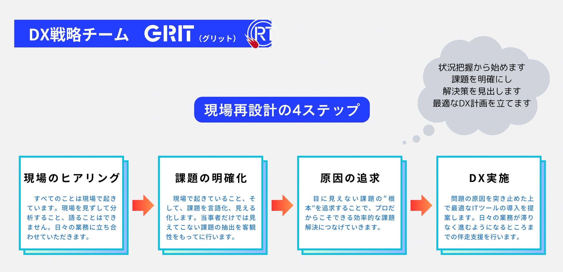 事業内容: DX戦略コンサルティング「GRIT」、業務効率化サブスクリプションサービス「GENCHO」