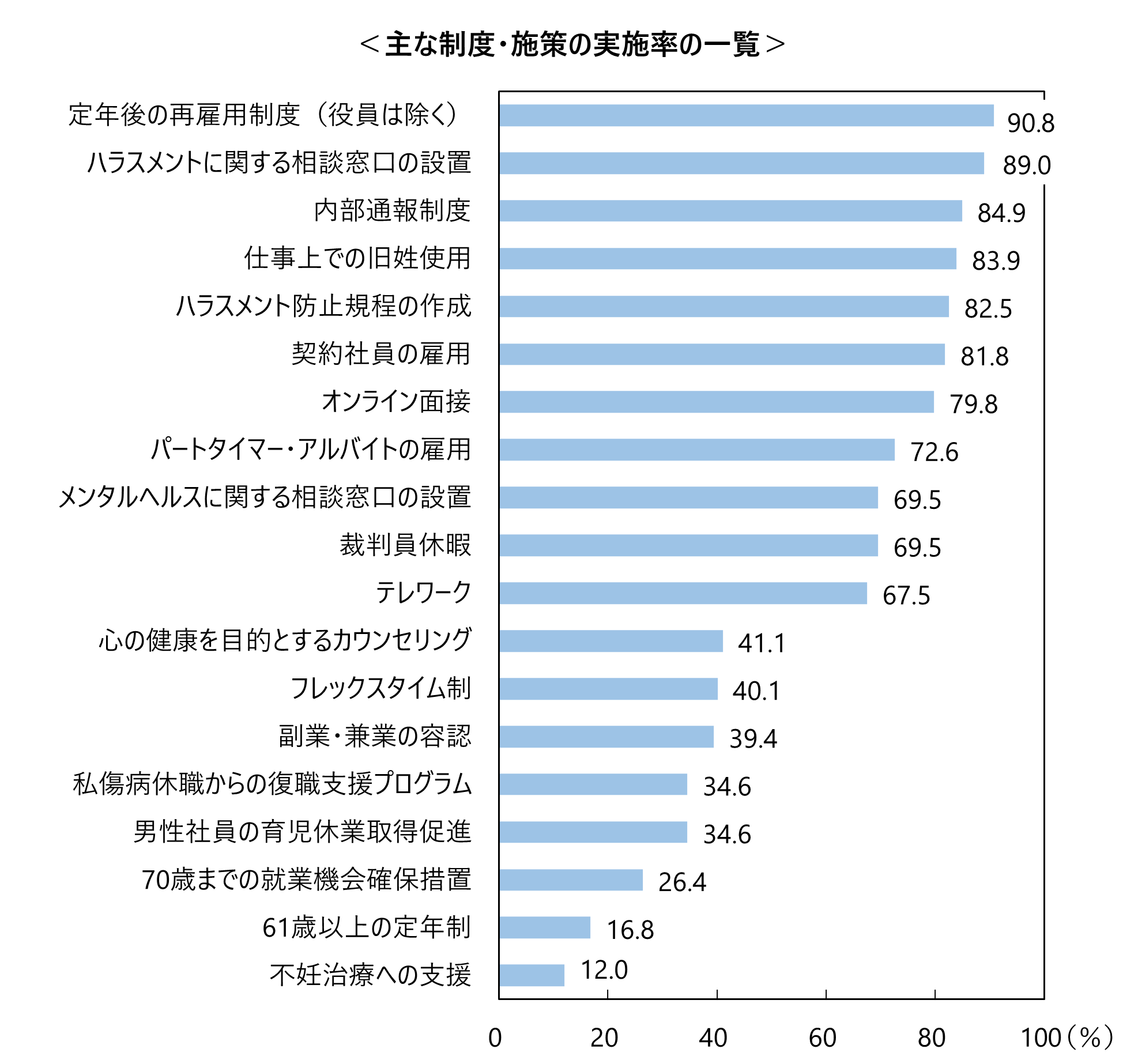<主な制度・施策の実施率の一覧>