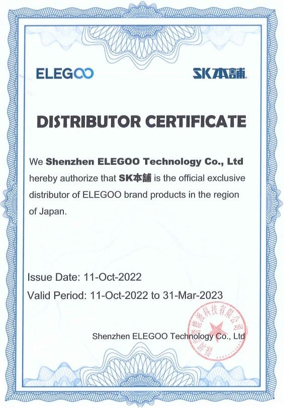SK本舗がElegoo社の独占代理店という従来の契約形態から総代理店へ切り替えるにあたり、より多くの方にElegoo社の3Dプリンターの魅力や体験を拡大して頂きたく、2次代理店を積極的に募集しています。