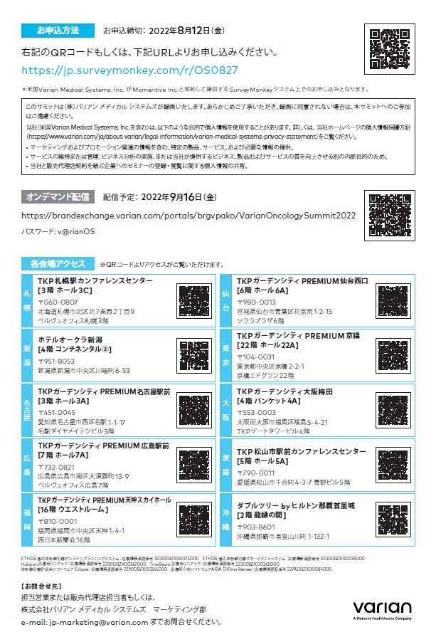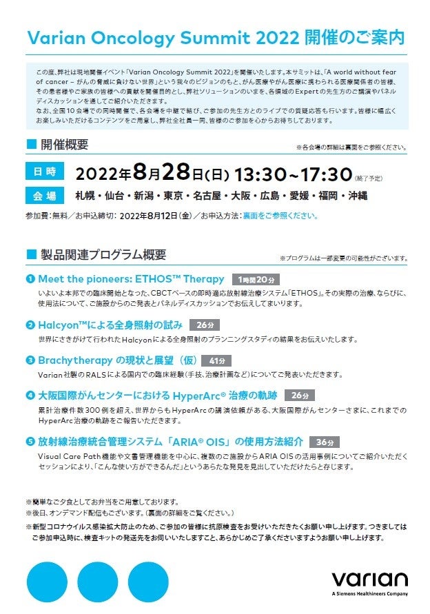 約4年ぶりの大規模現地イベント!革新的ながん医療技術とソリューションの“最先端情報”を届ける「Varian Oncology Summit 2022」8月28日(日)開催が決定