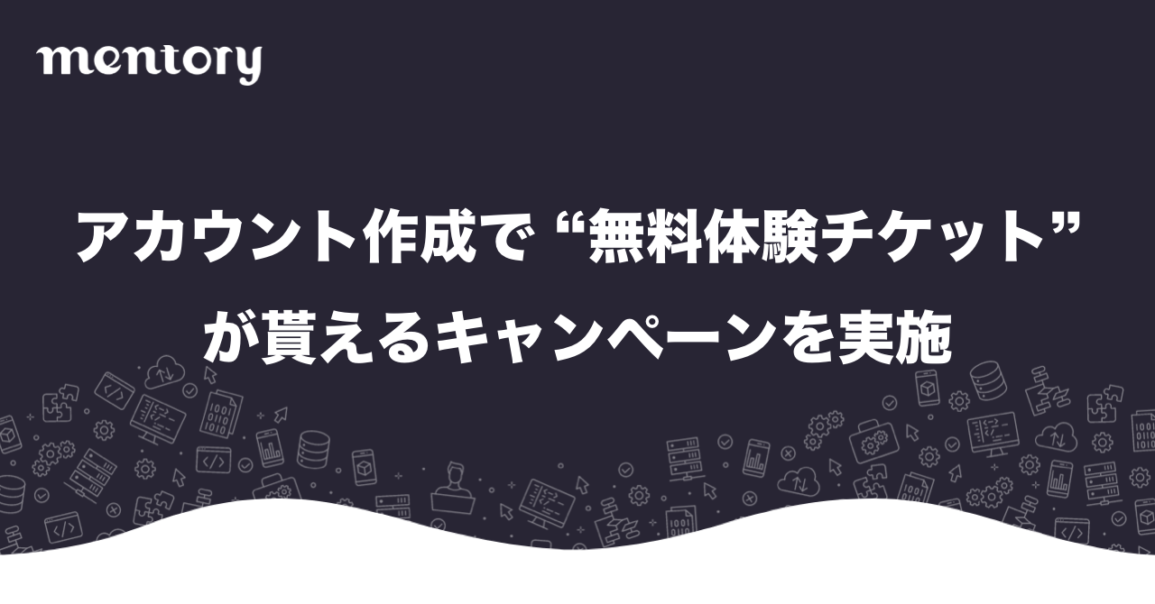 そこで今回は、はじめてmentoryをご利用いただく皆さまを対象とした「アカウント作成で無料体験チケットが貰えるキャンペーン」を実施いたします。