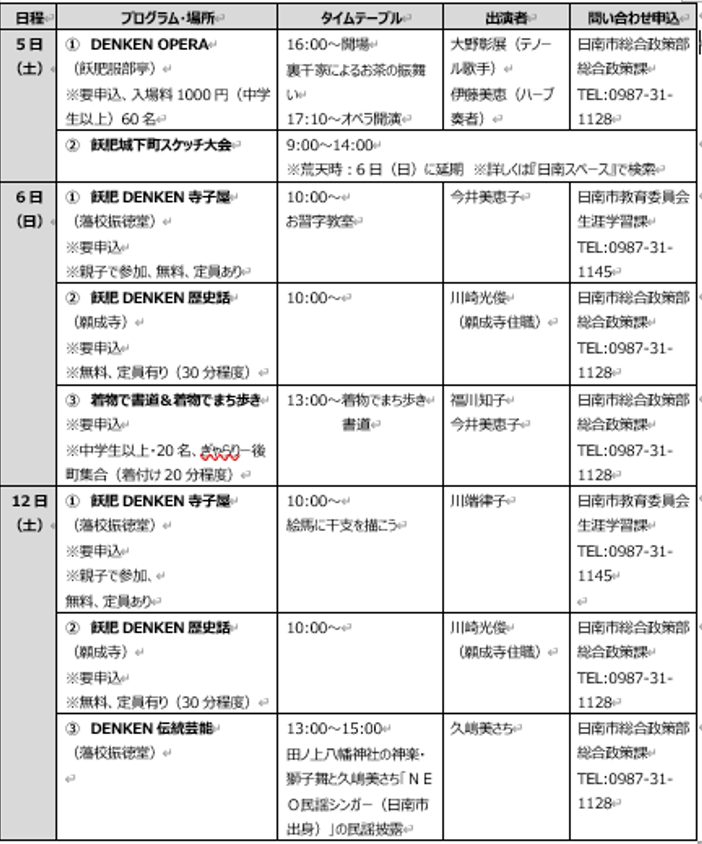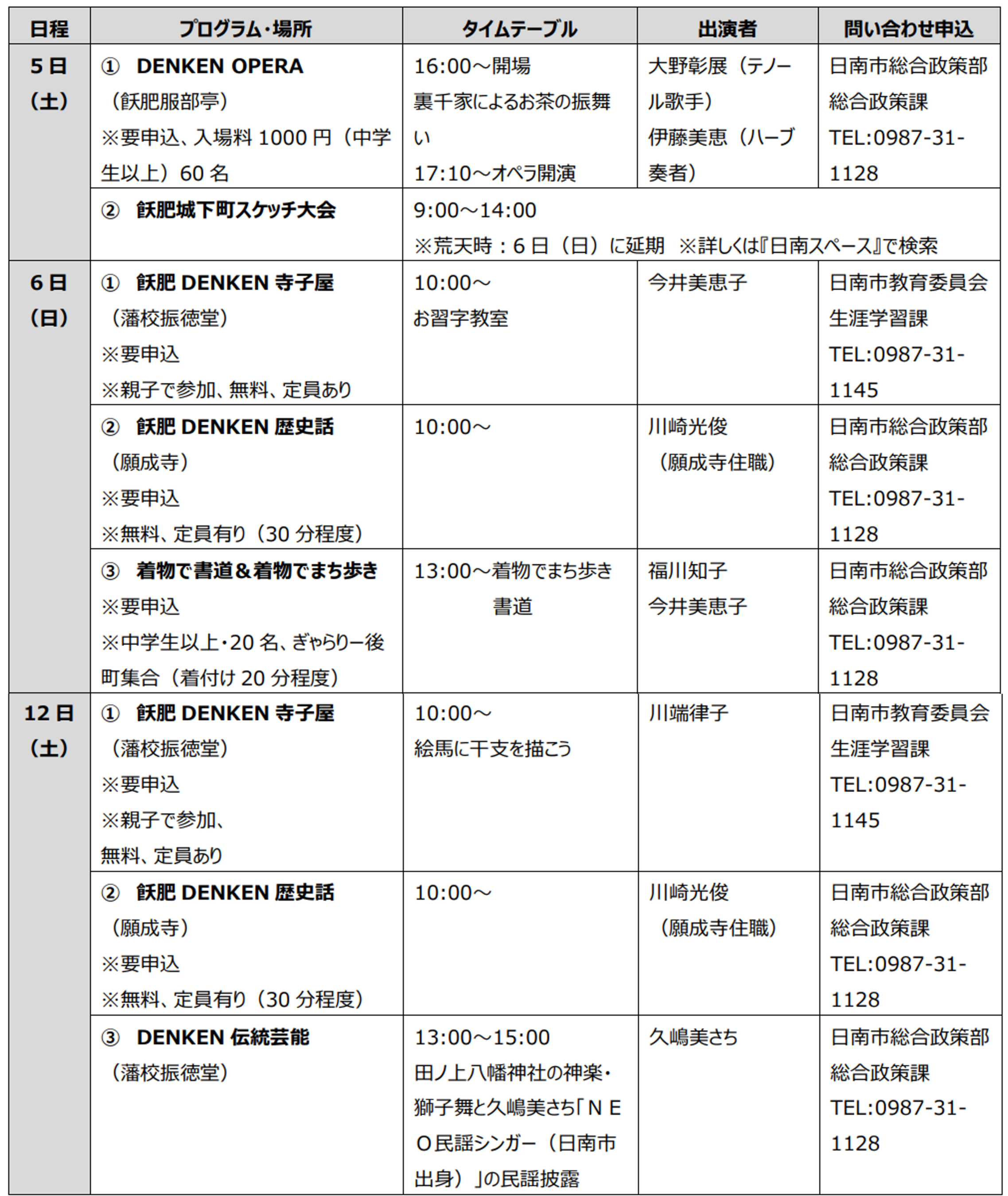 ・共催:株式会社狼煙(企画・運営)、飫肥城下文化財を活用した観光まちづくり事業協議会(企画・運営)