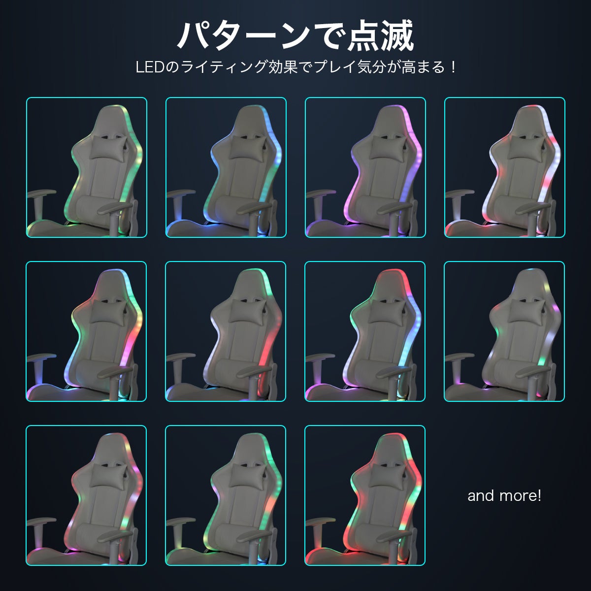 - 『LED ゲーミングチェア ホワイト GAMING1770』の主な特徴