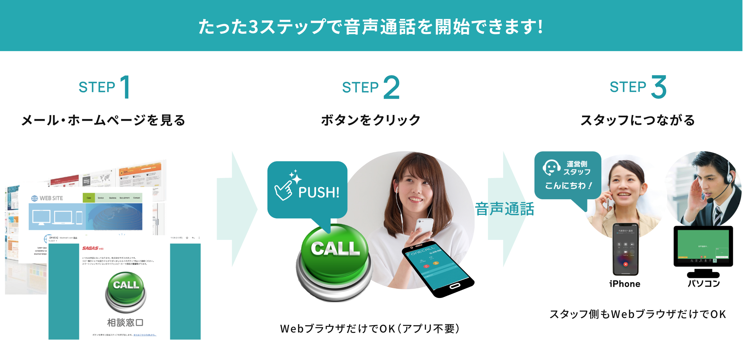 「通話窓口ボタン」を貼っておくと、それに興味を持った顧客がボタンをおして音声通話を掛けてくれる、