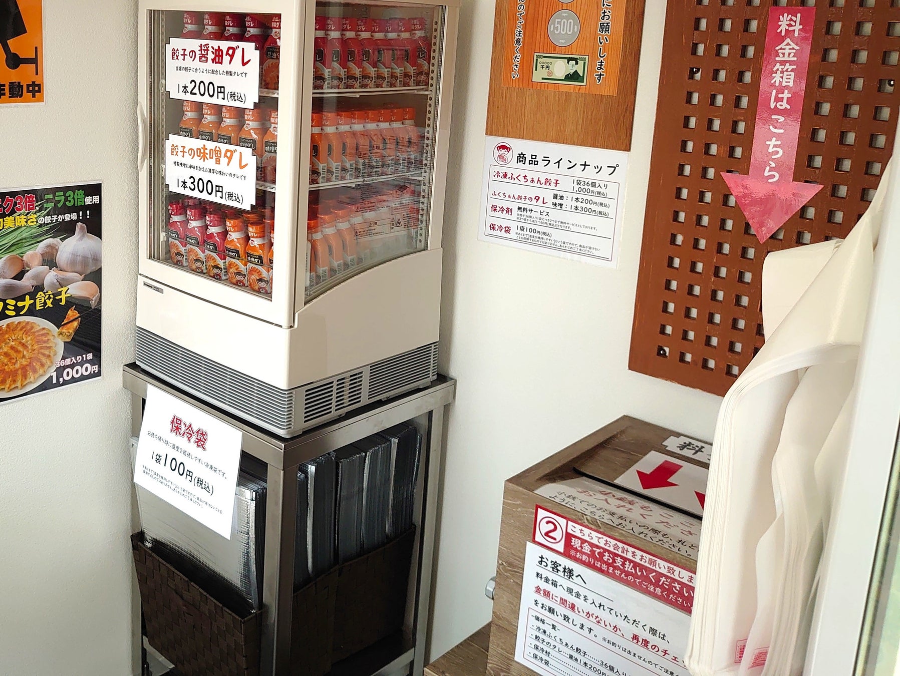 「大阪ふくちぁん餃子」は大阪で人気の老舗ラーメンチェーン店「大阪ふくちぁん」のオリジナル餃子を販売する店舗です。「大阪ふくちぁん」は30年以上の歴史をもち、いまでは地元では知らない方がいないほどの人気ラーメンチェーン店に成長しました。その人気メニューであるふくちぁん餃子を販売する無人販売店は、現在、関西・北陸を中心に60店舗以上展開されています。この「大阪ふくちぁん」の餃子の味を長野県でも楽しんで頂きたいと考え、オープンに至りました。コロナ禍のもと、ご家族で飲食店に行く機会は減ってしまいましたが、「大阪ふくちぁん餃子」なら、本場の味をご家庭で手軽に楽しんで頂けます。購入方法は、冷凍庫から餃子を取り、代金を貯金箱に入れていただくという至ってシンプルなものです。24時間営業ですので、会社帰りなど時間を気にせずご購入いただけます。店内はカメラで警備をしておりますので、無人販売ではありますが、安心してご利用頂けます。