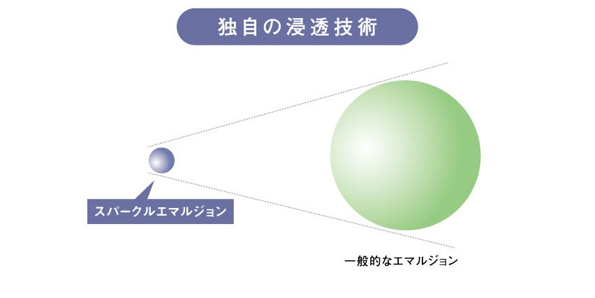ハイブリッド構造の球体に保湿効果のある植物性オイル(※9)を包み込んだ「ローリング効果」を採用。極小球体成分が、肌表面にコロコロと転がるように肌へなじみ、肌表面と角質層のすみずみへ均一にうるおいを届けます。