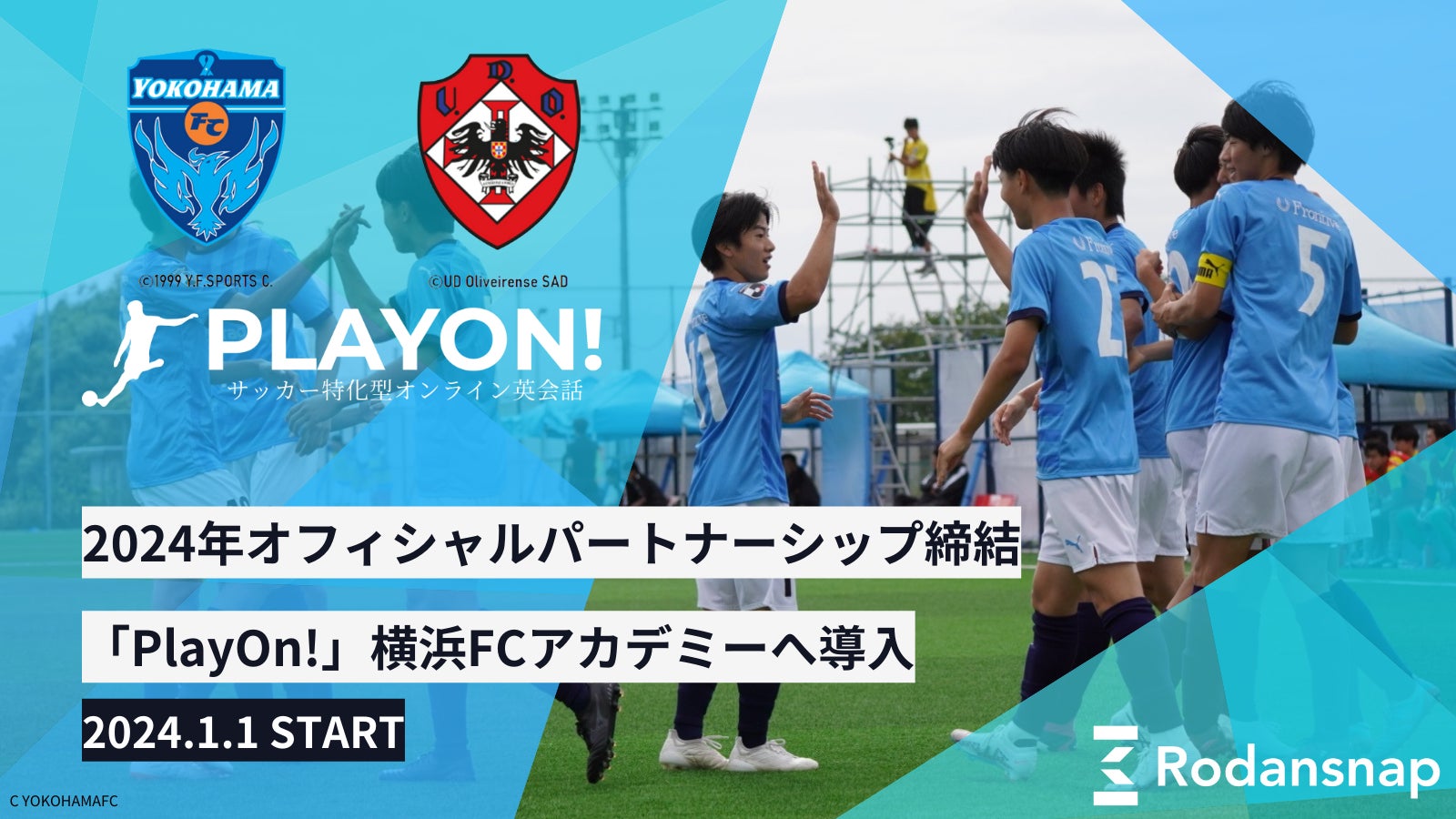 サッカー特化型オンライン英会話の「PlayOn!」国内唯一のMCOを推進する横浜FCとオフィシャルパートナーシップを締結し、アカデミー生を対象にレッスン提供を開始。