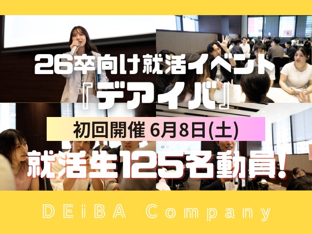 株式会社DEiBA Company(所在地:東京都千代田区神田神保町3丁目6、代表取締役:志村友樹)は、2024年6月8日(土)に2026卒向け就活イベント『デアイバ』の初回開催を迎えました。今回は参加数80名を想定したイベントでしたが、大きく上振れ125名という多くの学生の方にご参加いただき、活気溢れる雰囲気の中、企業と学生の「出会い」を提供しました。