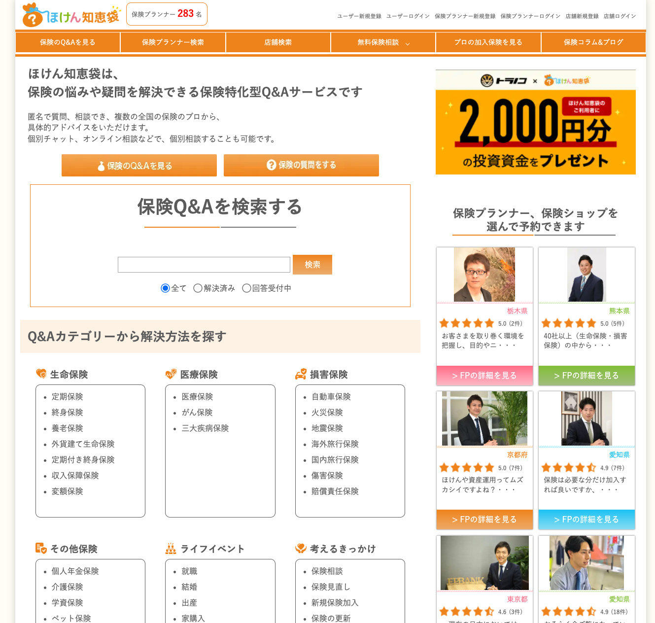日本初!「ほけん知恵袋」保険特化型Q&Aサービスへリニューアル! 質問数1,000件、保険プランナー回答数1万件突破!