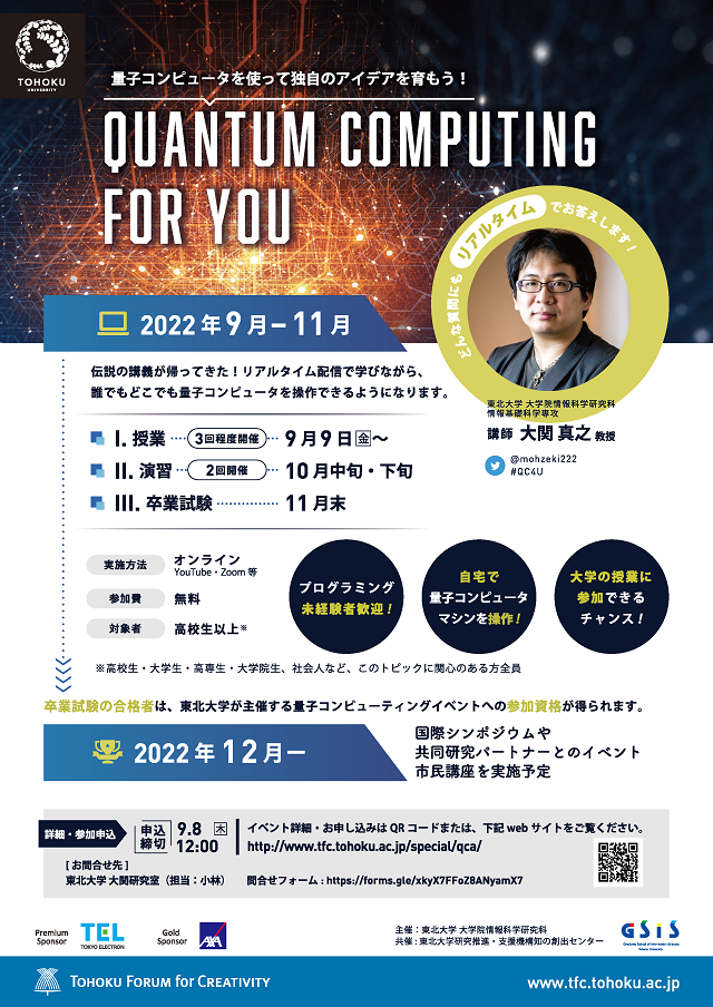 場 所:オンライン (Youtube Live) https://altema.is.tohoku.ac.jp/QC4U/