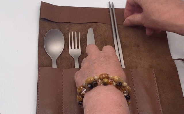素材から縫製まで純国産の牛革製カトラリーケース。ロール式で収納力や携帯性が抜群。