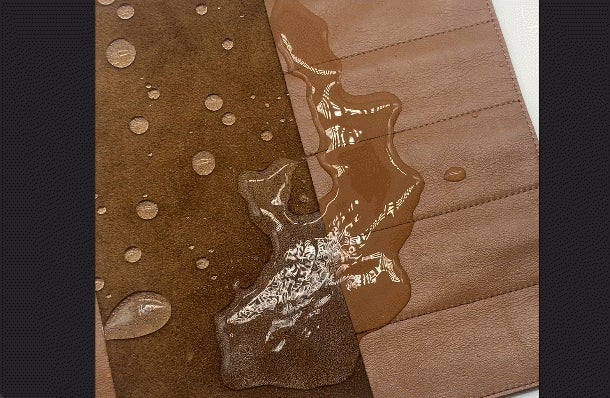 本革製でも手洗い可能な「洗えるレザー」。防水加工済みで汚れが付きにくく、清潔に使える。