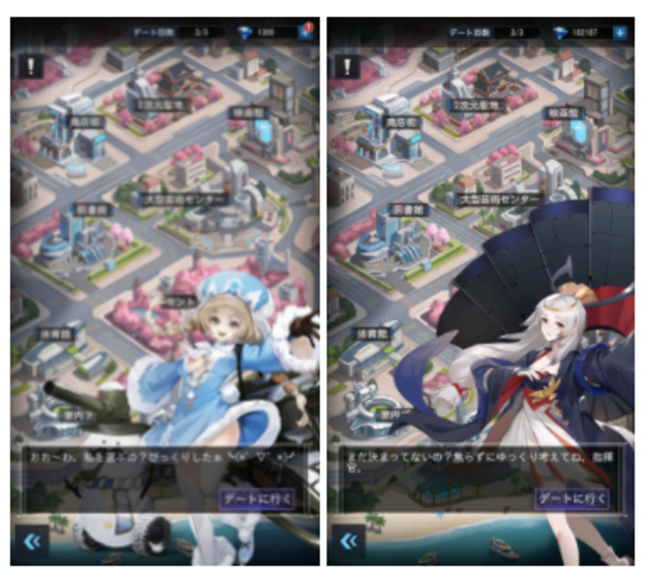 デートでは戦姫を三つの場所へ遊びに誘うことができる。各キャラクターごとにデートで好感度が上がる場所が違うので、適宜変更するのがおすすめだ。喜ぶ場所によっては、キャラクターの意外な一面が見られるかも…⁉︎