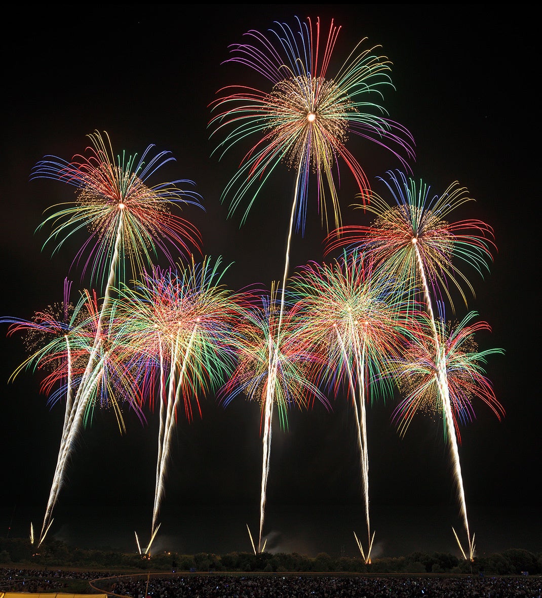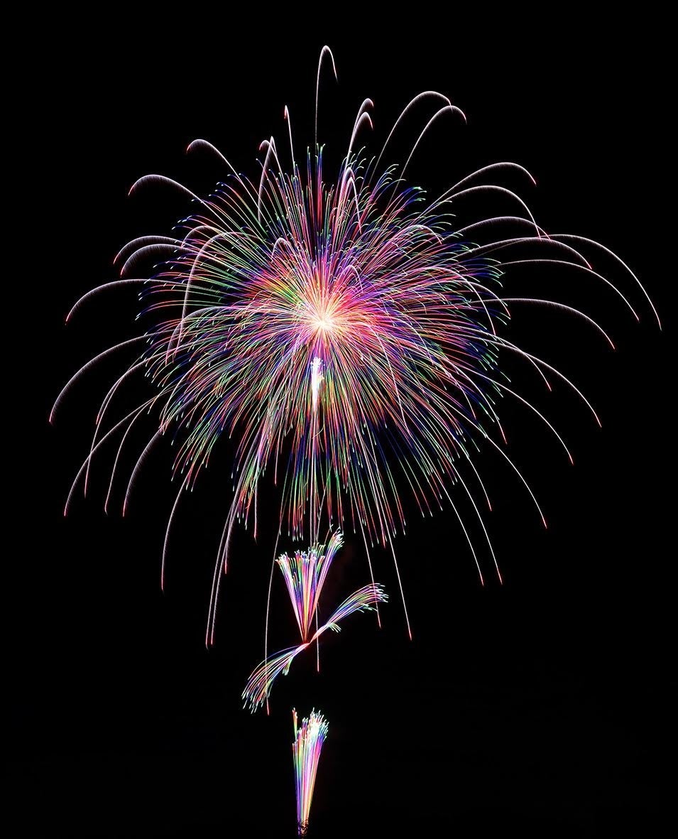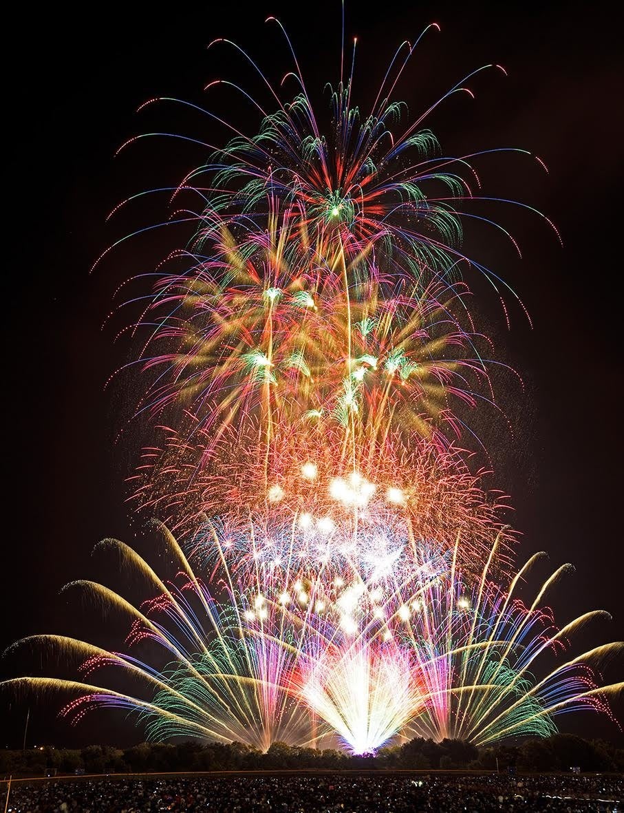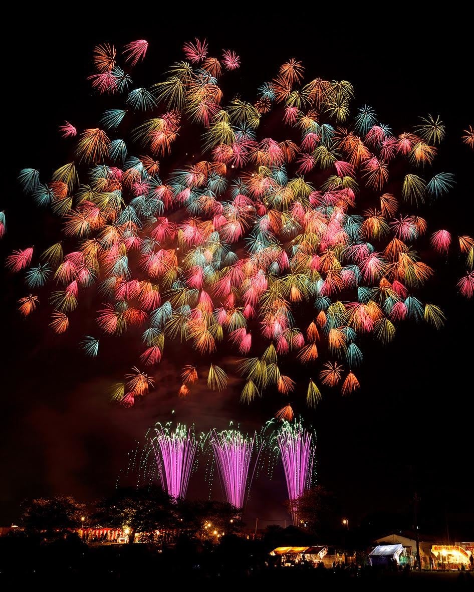 世界最先端打ち上げテクノロジーと高度な技術が必要とされる多重芯(たじゅうしん)花火や、時差式花火を使用。日本の「芸術花火」の未来をお見せします。