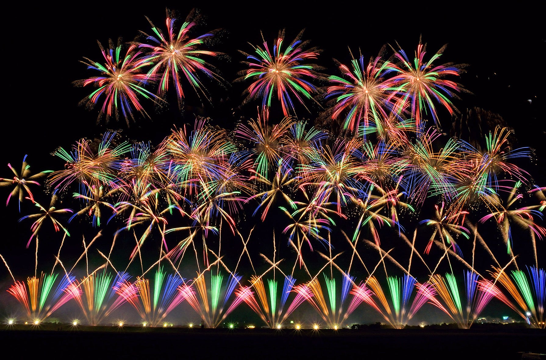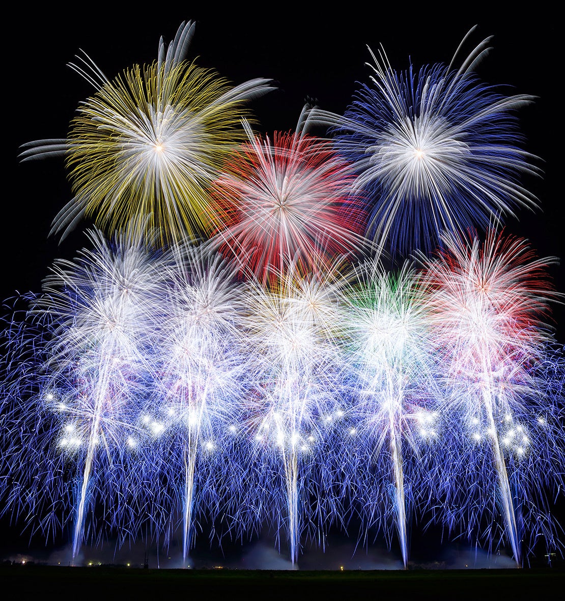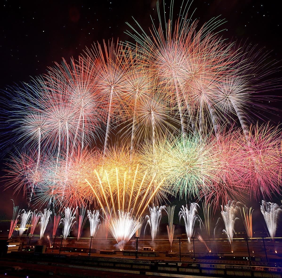 世界最先端打ち上げテクノロジーと高度な技術が必要とされる多重芯(たじゅうしん)花火や、時差式花火を使用。日本の「芸術花火」の未来をお見せします。