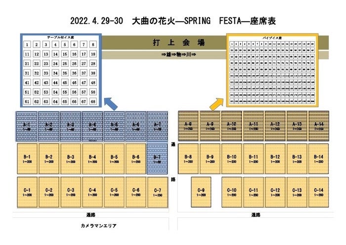 その場で現金と引換で観覧席券をお渡しします。