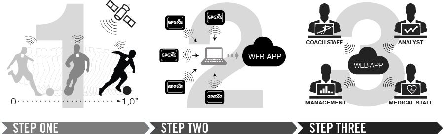 「GPEXE」は、GPSデバイスを利用してサッカーやラグビーなど様々なスポーツで使用でき、各選手のコンディション管理およびパフォーマンス分析システムです。GPEXEのデバイスは、 FIFA(国際サッカー連盟)やWorld Rugby(ワールドラグビー)に認証されており、公式試合に使用できます。GPEXEは現在、イタリアのセリエAやイングランドのプレミアリーグ、スペインのラ リーガ、フランスのリーグアンなどのサッカーのトップレベルのチームで多く採用されています。
