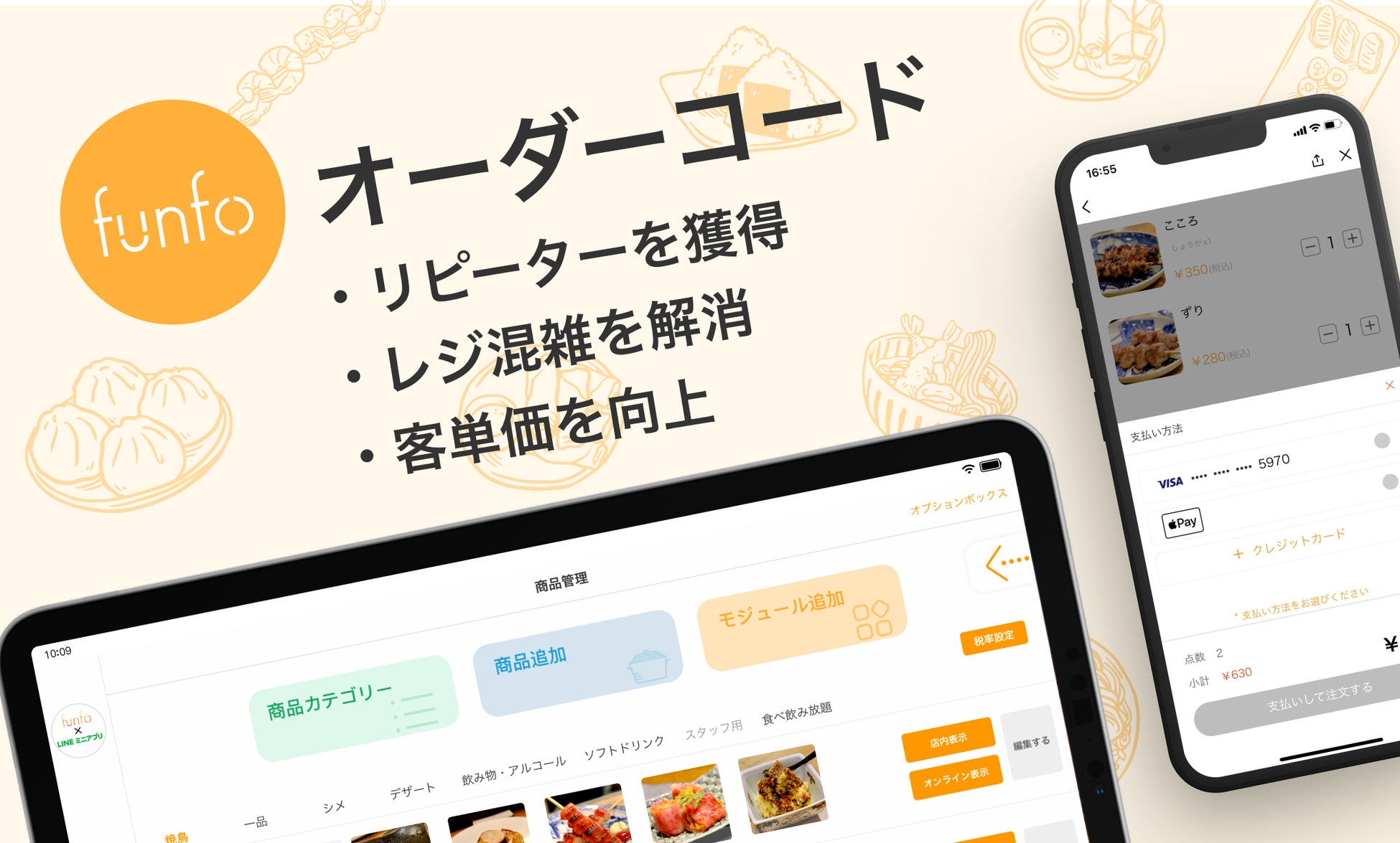 飲食店のモバイルオーダーを簡単に実現するアプリ「funfo」が「オーダーコード」機能をリリース