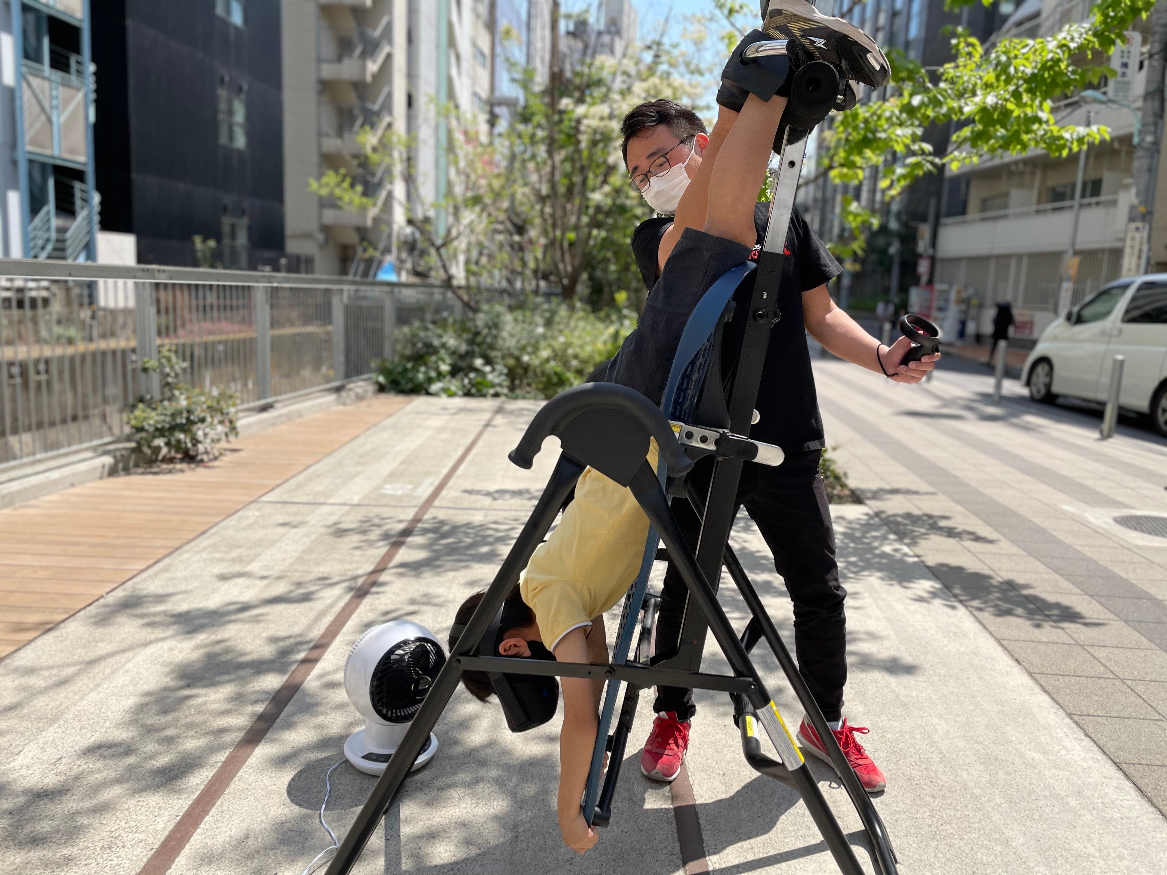 体験者はVR体験装置によって身体が真っ逆さまになると同時にVRゴーグル内でも落下する風景を目にすることで、まるであべのハルカスからバンジージャンプをしているかのようなスリルと爽快感を味わうことができます。