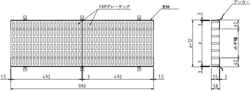 【中央、目の細かいのが車両対応型FRPグレーチング】