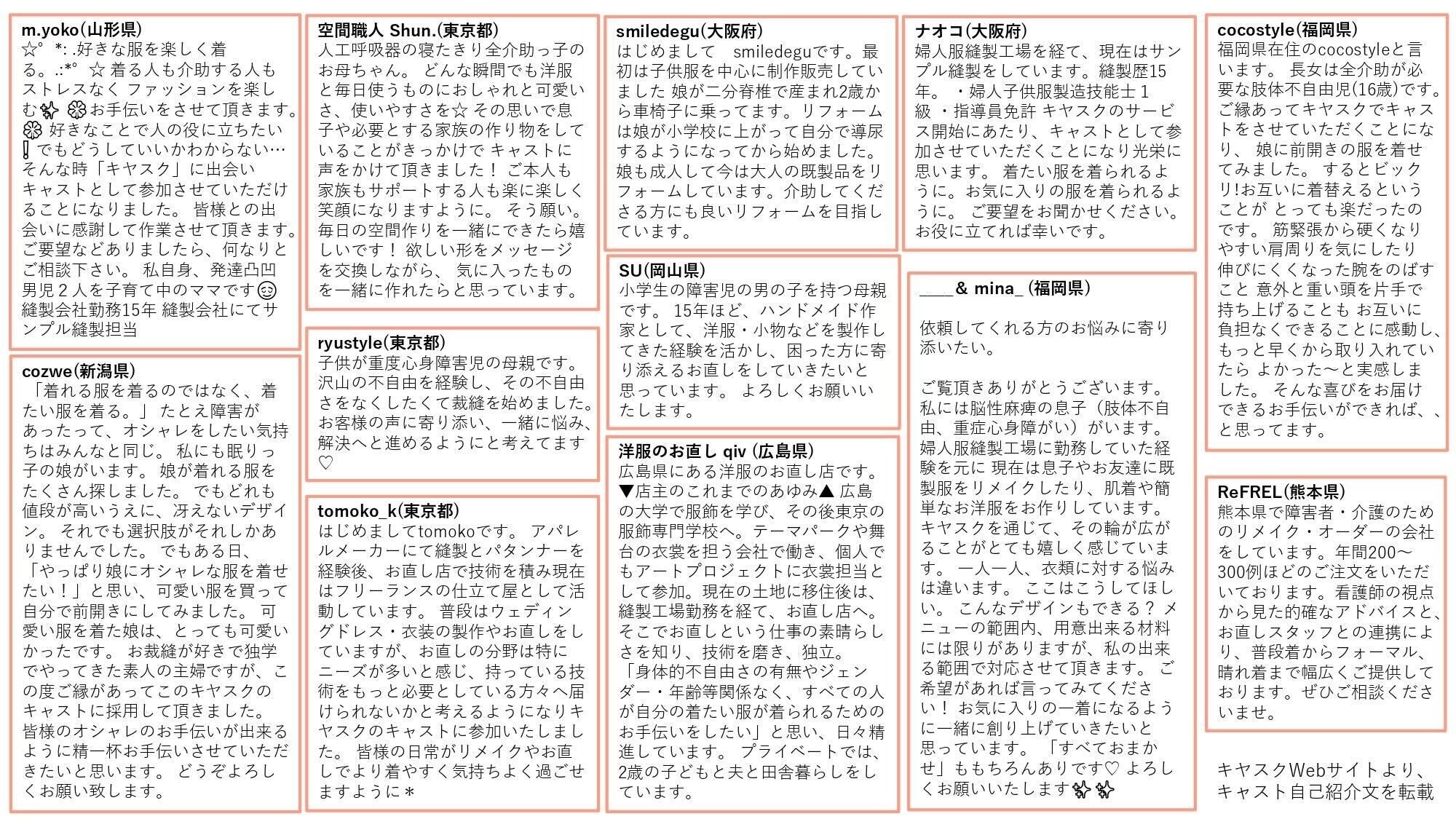 3:服の選択肢の少なさに悩むお客様に対して、同じ悩みを経験してきた肢体不自由時の母親など、技術と心の両面でお客様に優しく寄り添えるスタッフ=『キヤスト』が接客からお直しまでを在宅のままフルリモートで提供するサービスモデル