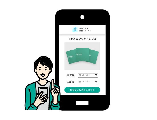 当社の個人向け事業である、コンタクトレンズ定期便サービス・コンクルをベースとし、当サービスは開発されました。患者様はお支払や配送日指定等、全ての手続きをスマートフォンから行うことができます。