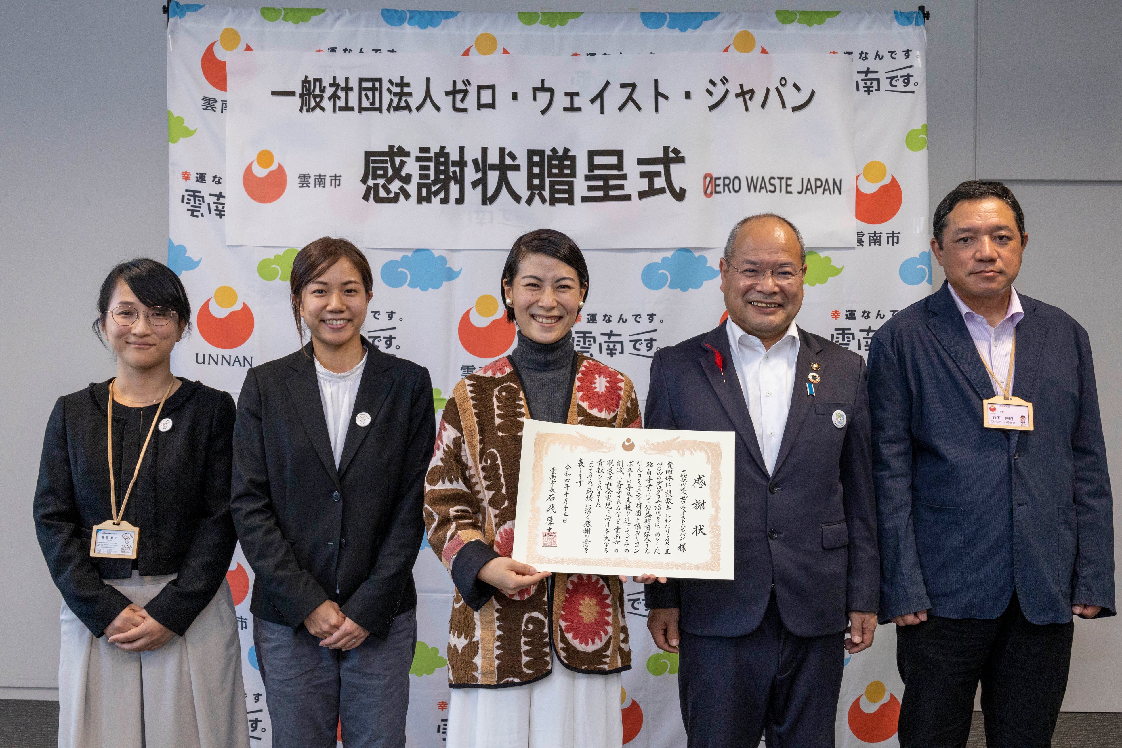 ゼロ・ウェイスト・ジャパン、「循環のまちづくり」をすすめるゼロ・ウェイスト活動の推進により、島根県雲南市より感謝状を授受