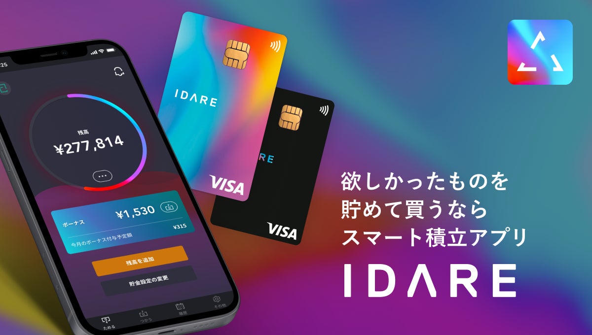 『IDARE』は、目標に向かってお得に積立ができるスマートフォンアプリです。(URL: https://idare.jp/)