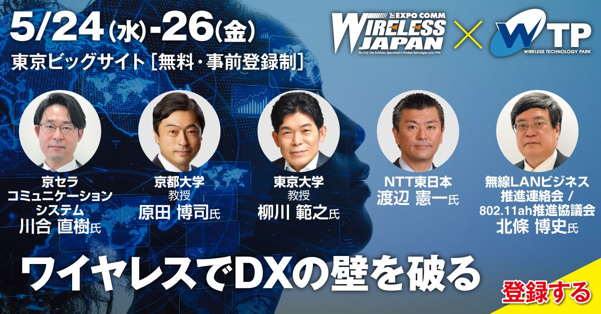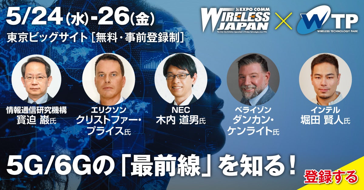 国内最大級の無線通信の専門展示会「ワイヤレスジャパン」と「ワイヤレス・テクノロジー・パーク(WTP)」が5月24日~26日の3日間、今年も東京ビッグサイトで開催されます。