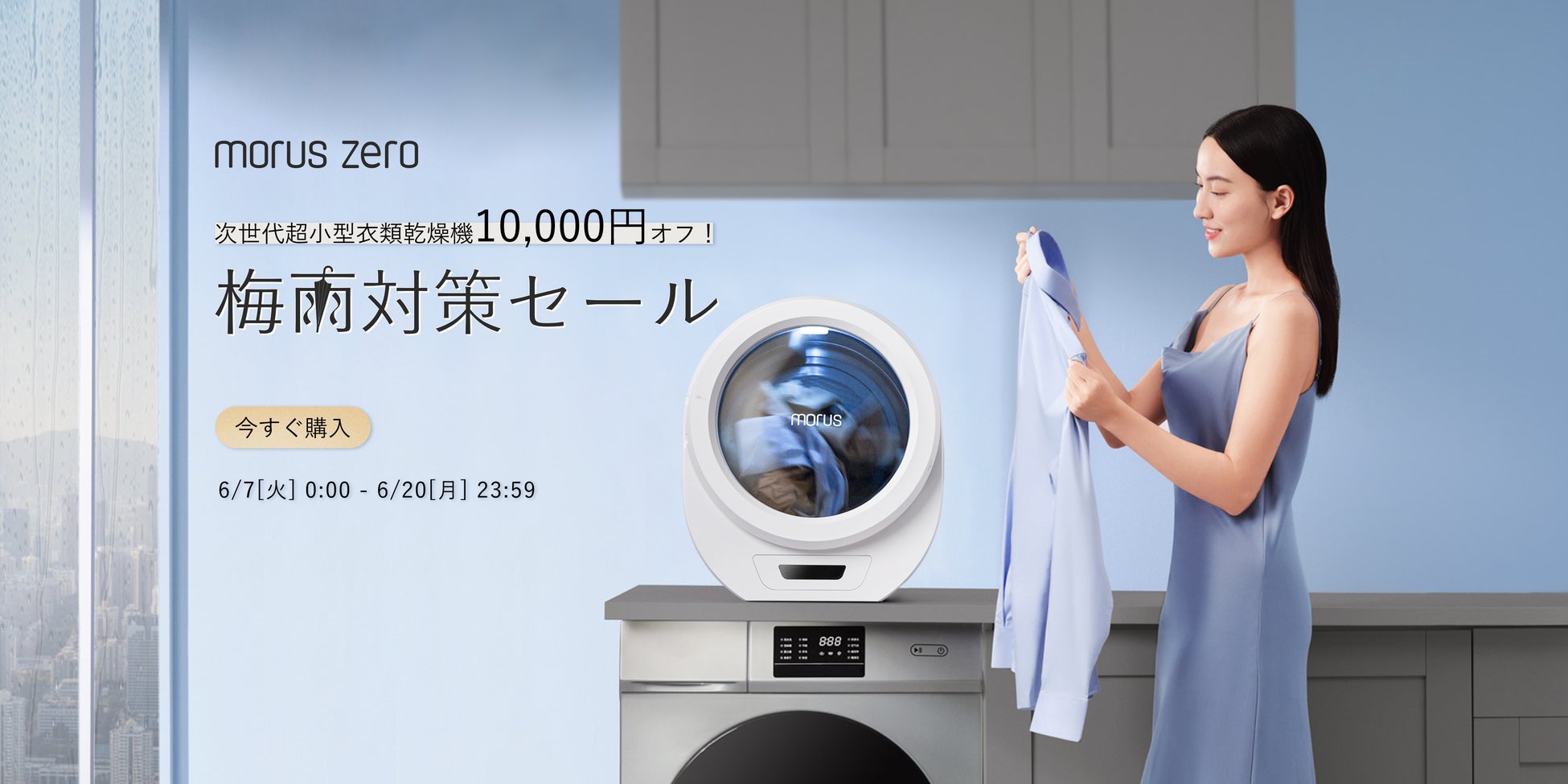 これからの梅雨季節を応援します!まもなく大人気の超小型衣類乾燥機「Morus Zero」の「梅雨対策キャンペーン」を開催致します。