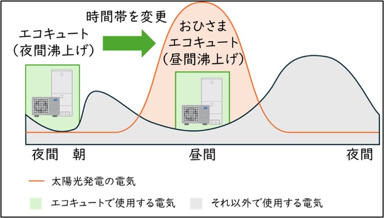 当社は、日中に湯沸かしを行う「おひさまエコキュート」等を利用したり、既存のエコキュートの湯沸かし時間をずらしたりして、日中の電力を給湯に有効利用してくださる関西エリアのご家庭を対象とする新たな電力料金プラン「おひさまプラン」を創設します。