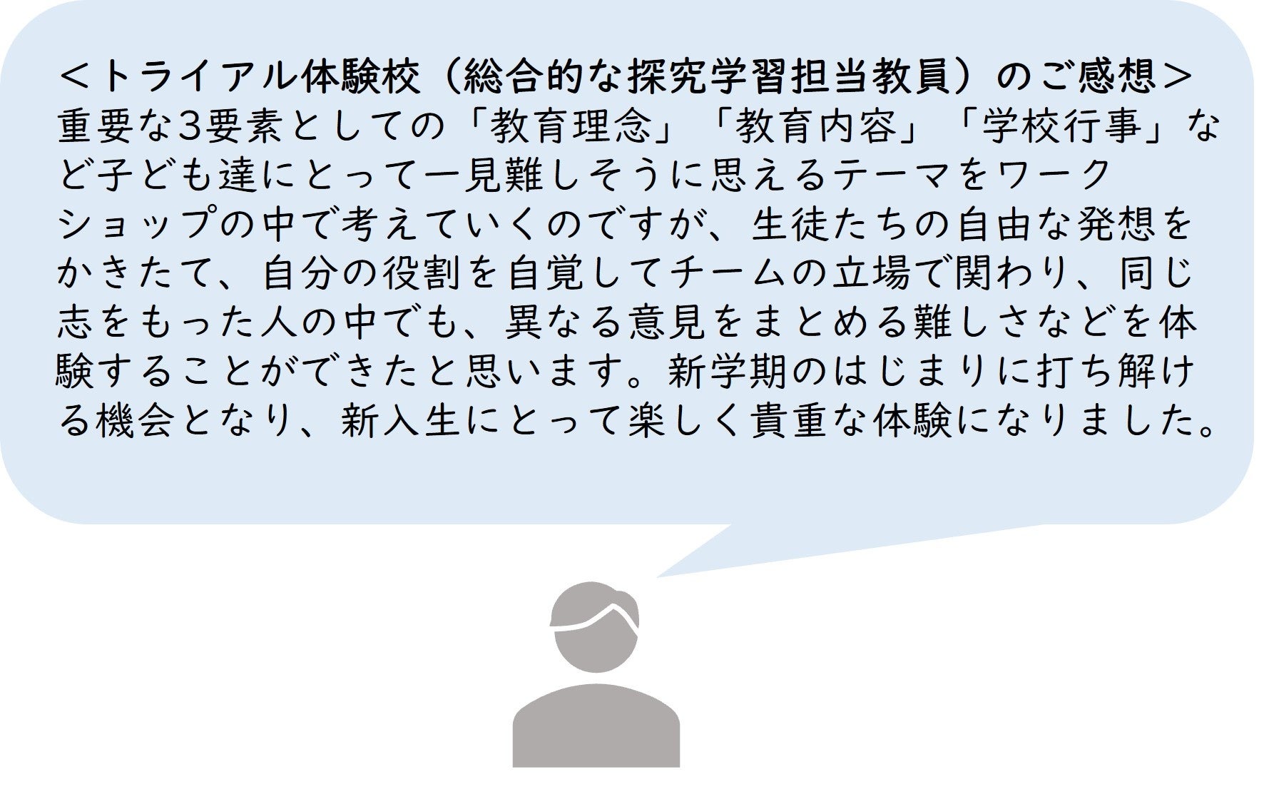 - 探究学習・発想力の鍛錬 積極的な対話で視野を広げ、可能性を高める