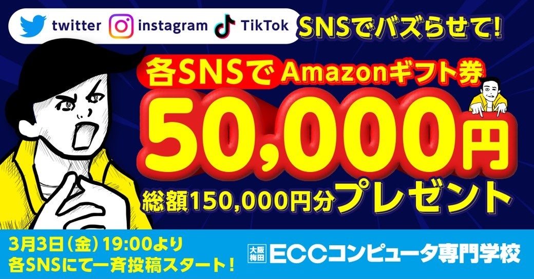 3月3日(金)19時よりECCコンピュータ専門学校のバズ企画始動!賞金総額15万円(Amazonギフト券)を獲得しよう!