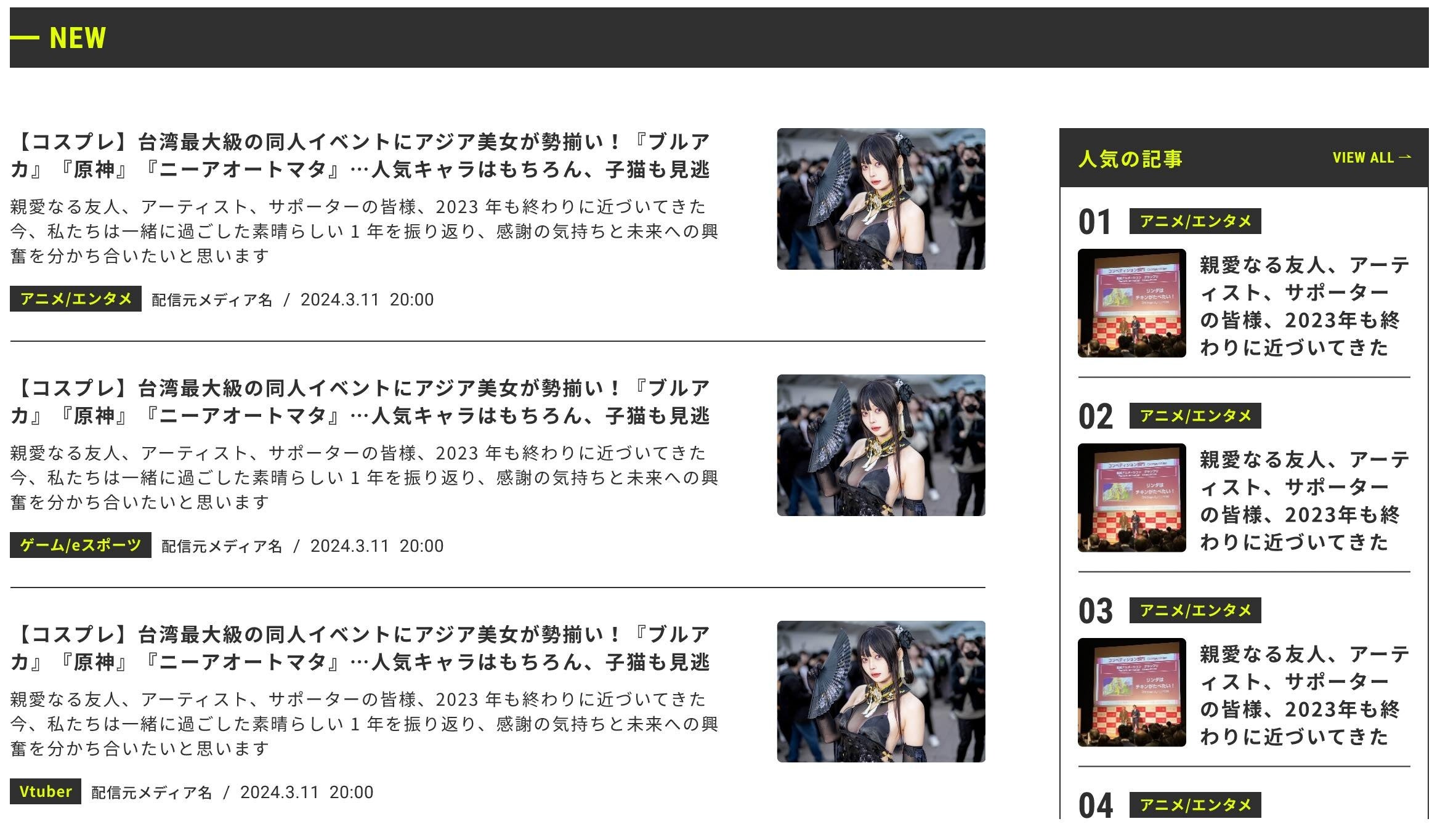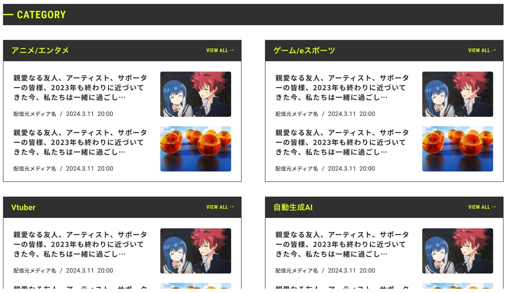 「アニメ/マンガ」「ゲーム/eスポーツ」「Vtuber/エンタメ」「Web3.0/メタバース」「ゲーミングPC/ゲーム機/半導体」「NFT/暗号通貨ゲーム」に関わる情報配信を随時行います。
