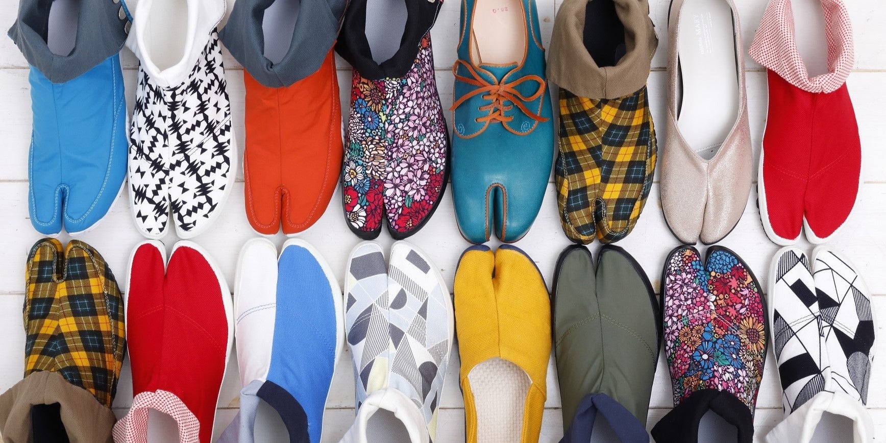 オリジナルの足袋スニーカーや足袋ソックスをはじめ、大手メーカーの地下足袋など、幅広いラインナップを、店舗やオンラインストアにて販売しています。