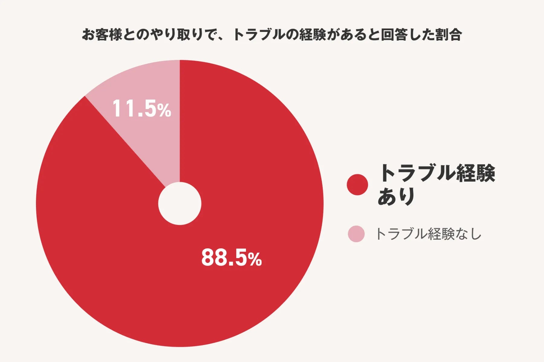 9割がトラブルを経験。トラブルを防ぐためには、今以上にお客様との丁寧で正確なコミュニケーションが必要